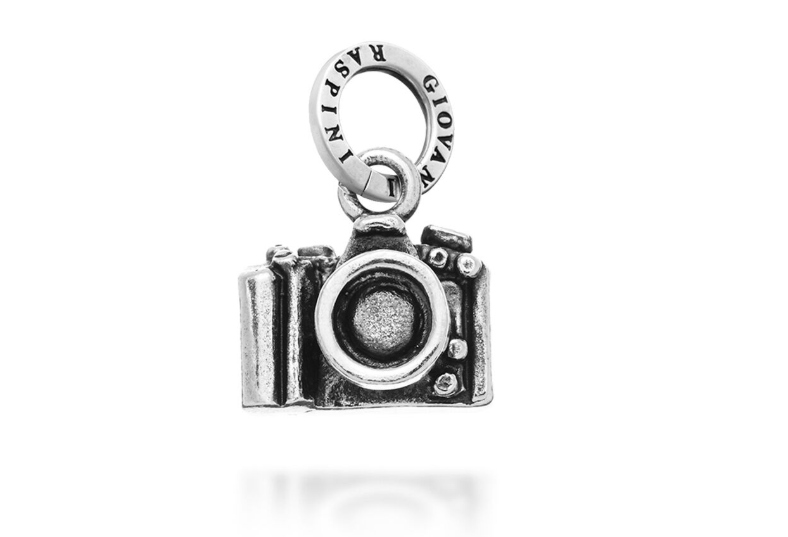 Cattura i ricordi con stile: il charm macchina fotografica Giovanni Raspini, alto 1,9 cm (esclusa maglina 0,9 cm), celebra l'arte della foto in argento 925 artigianale. Ideale per bracciali travel o collane storyteller.