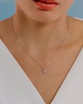 Girocollo In Oro Bianco 750 ‰ . Diamanti P.Ct. 1 Col. G Purezza Si. Aquamarina Goccia 7X5 Ct. 0,65.