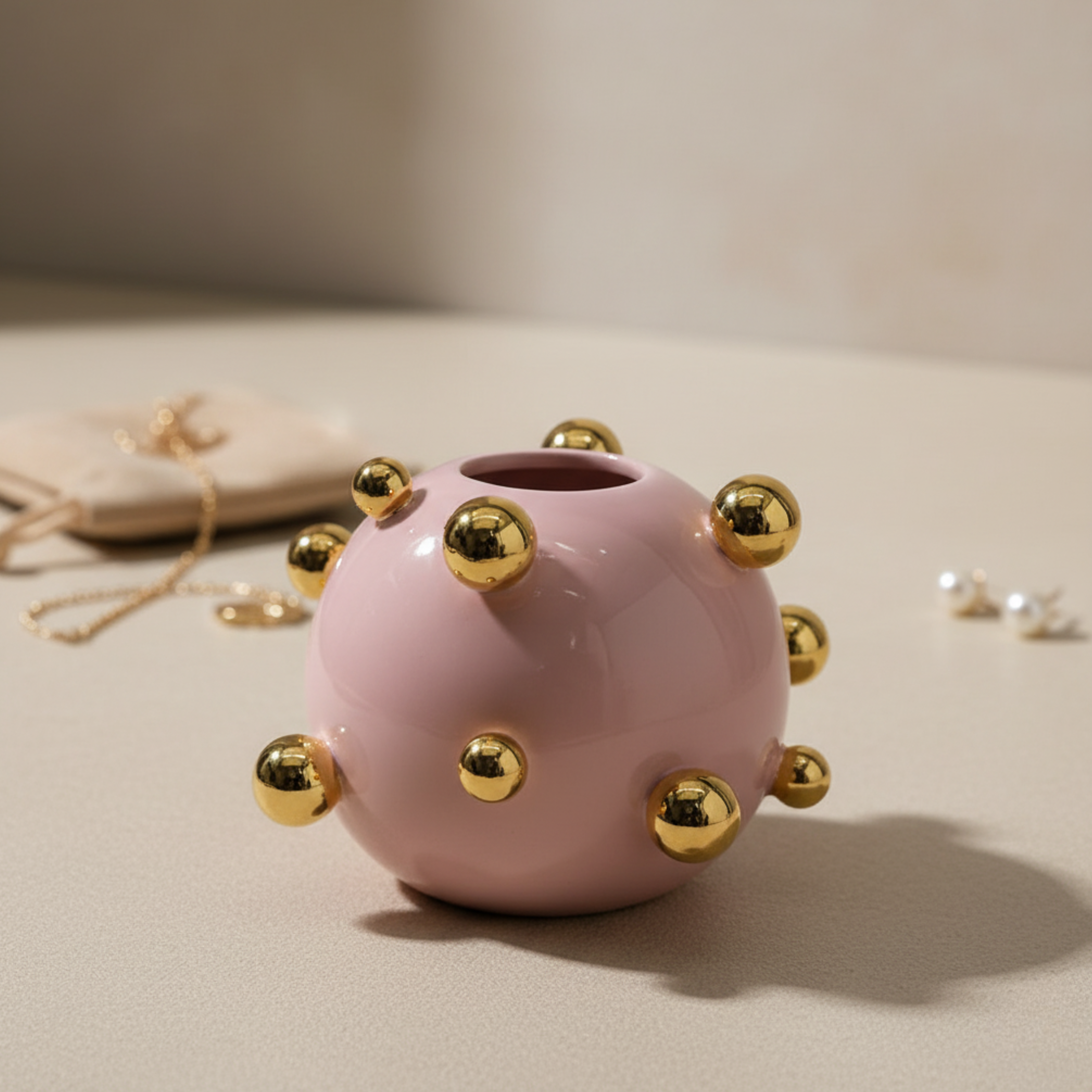 Vaso A Palla Sfere Oro Fondo Rosa Baby