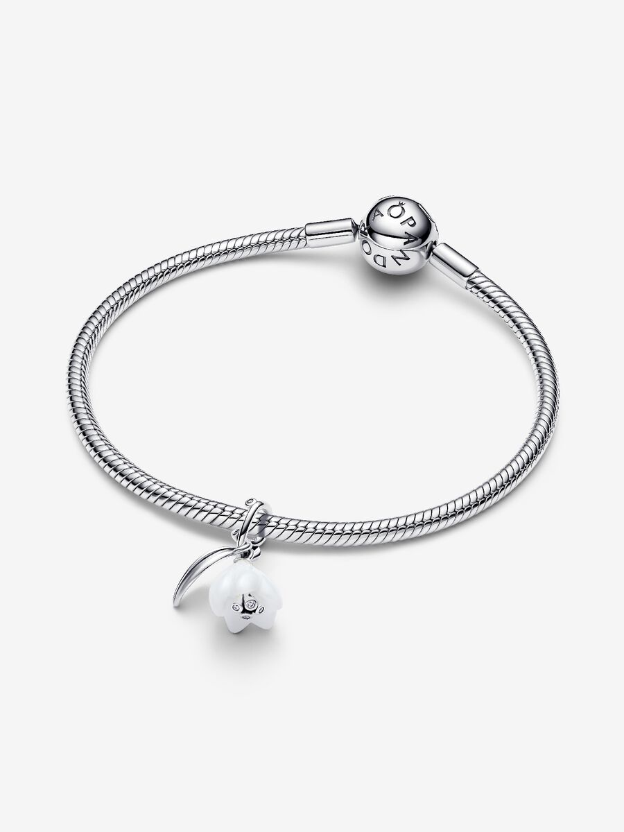 Pendente Fiore Bucaneve in Argento Sterling 925 con zirconia cubica incolore e Vetro di Murano bianco della nuova collezione Pandora.