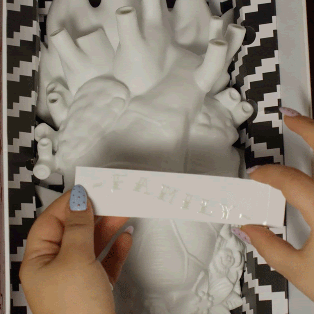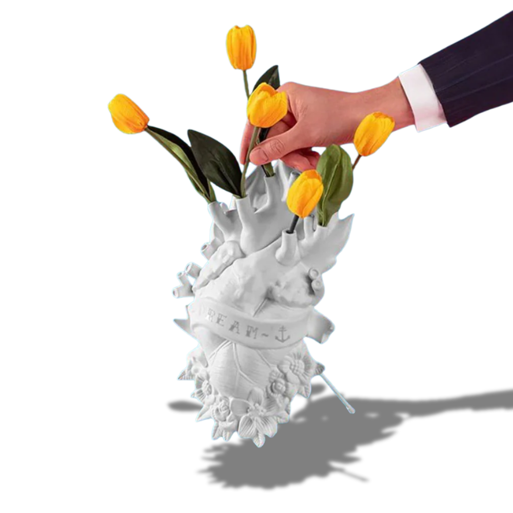 Sembra uscito da un antico saggio di anatomia, ma diventa un simbolo di amore contemporaneo: intenso, reale, imperfetto. Non è un semplice vaso decorativo, ma un vero oggetto di design capace di trasformare ogni ambiente con personalità e carattere.