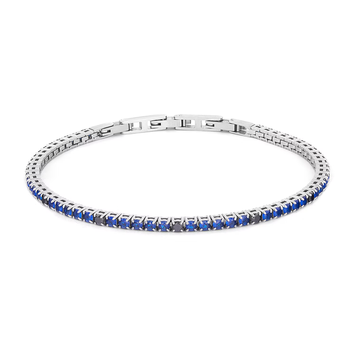 Bracciale Tennis in Acciaio e Zirconi Blu Zaffiro e Neri