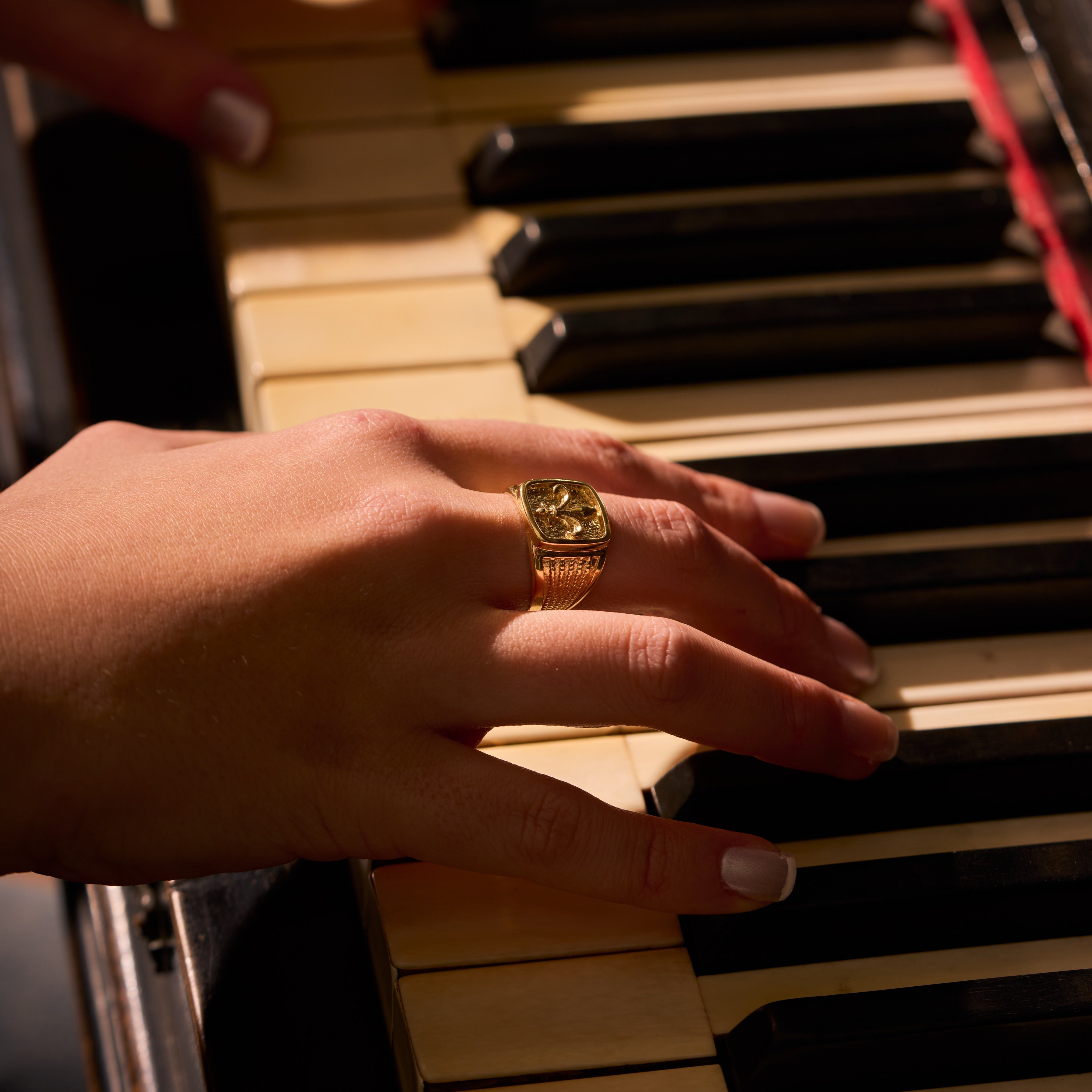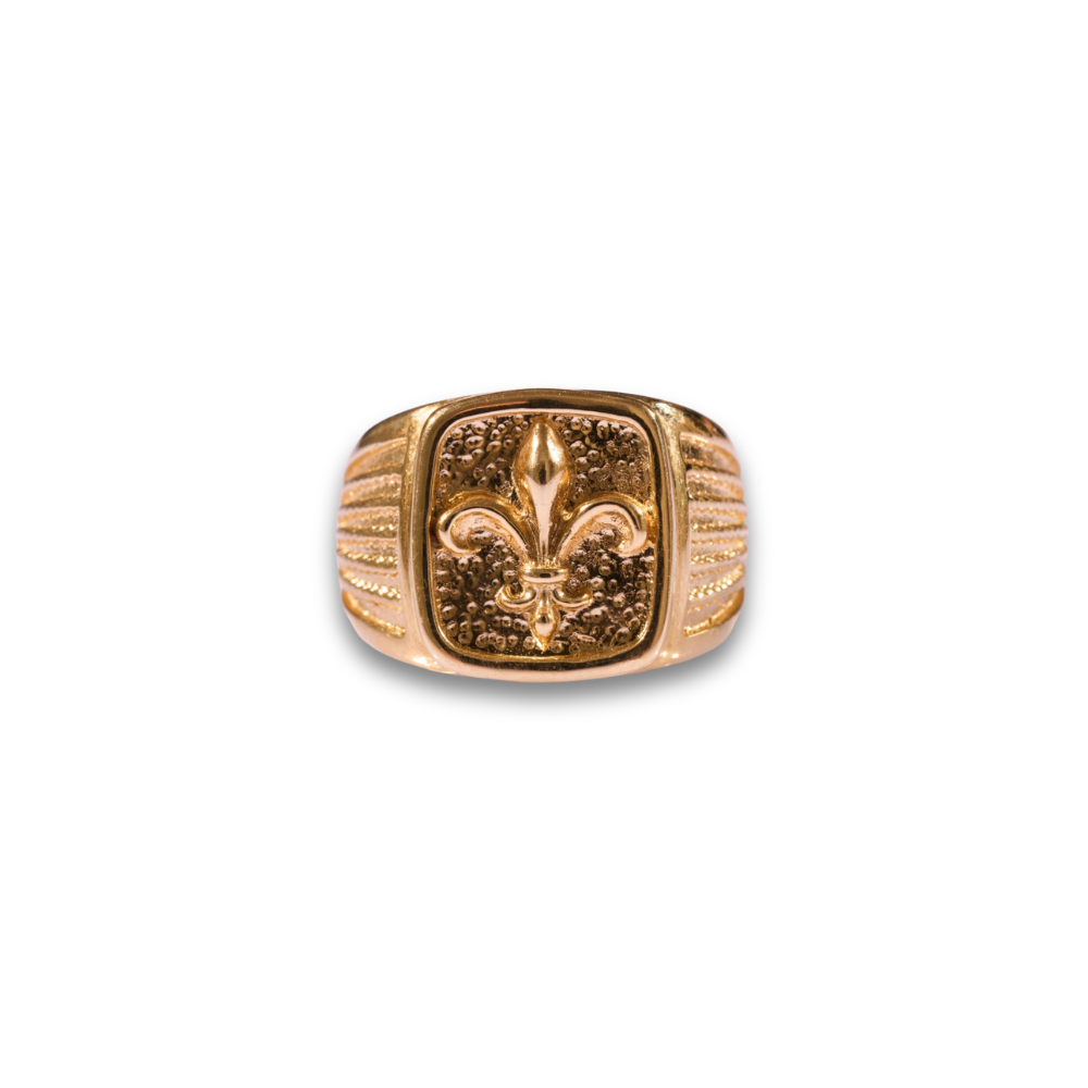18kt Gold Square Lily Chevalier Ring handcrafted in Tuscany by expert goldsmiths who pass down their knowledge through generations. Symbol of Florence and its beauty, to be enhanced every day in your outfit.