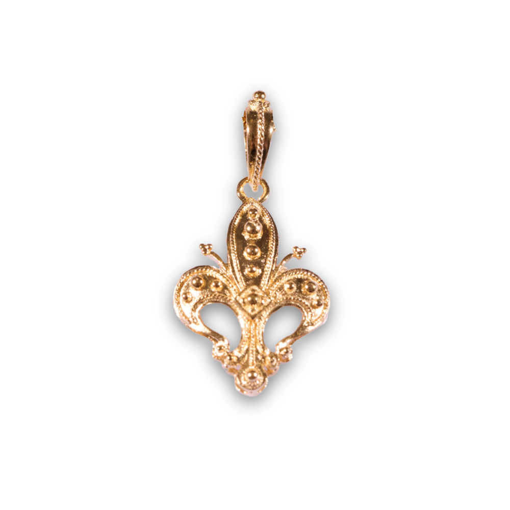 18kt Gold Lily Charm handcrafted in Tuscany by expert master goldsmiths, who pass down their knowledge through generations. A symbol of Florence and its beauty, to be showcased every day in your outfit.