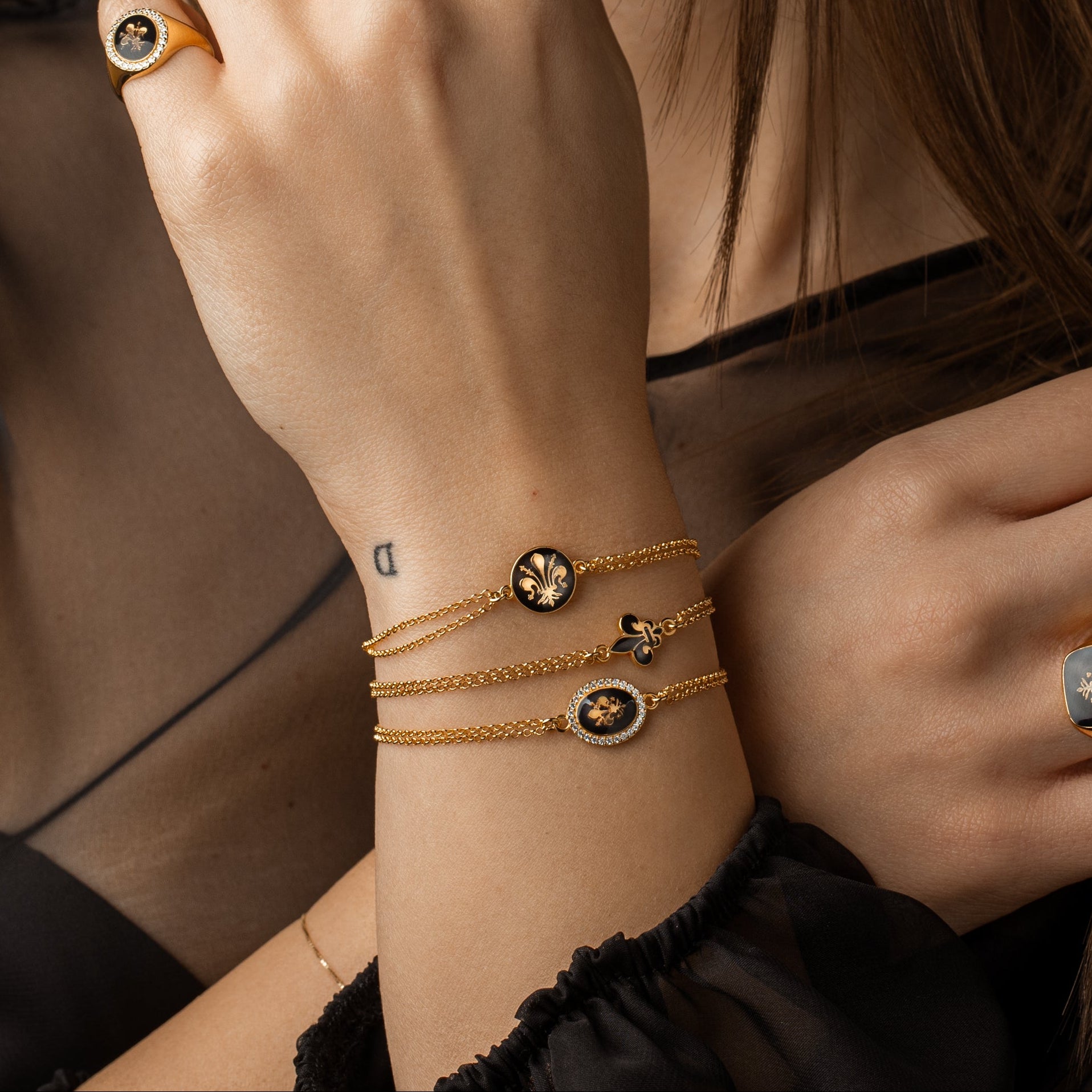 Bracelet Florence Lily in 925 silver, 24kt gold plating and black enamel (hand-decorated hot enamel). The Florence Lily is historically associated with freedom and the very name of the city. Handcrafted jewel entirely made in Italy.