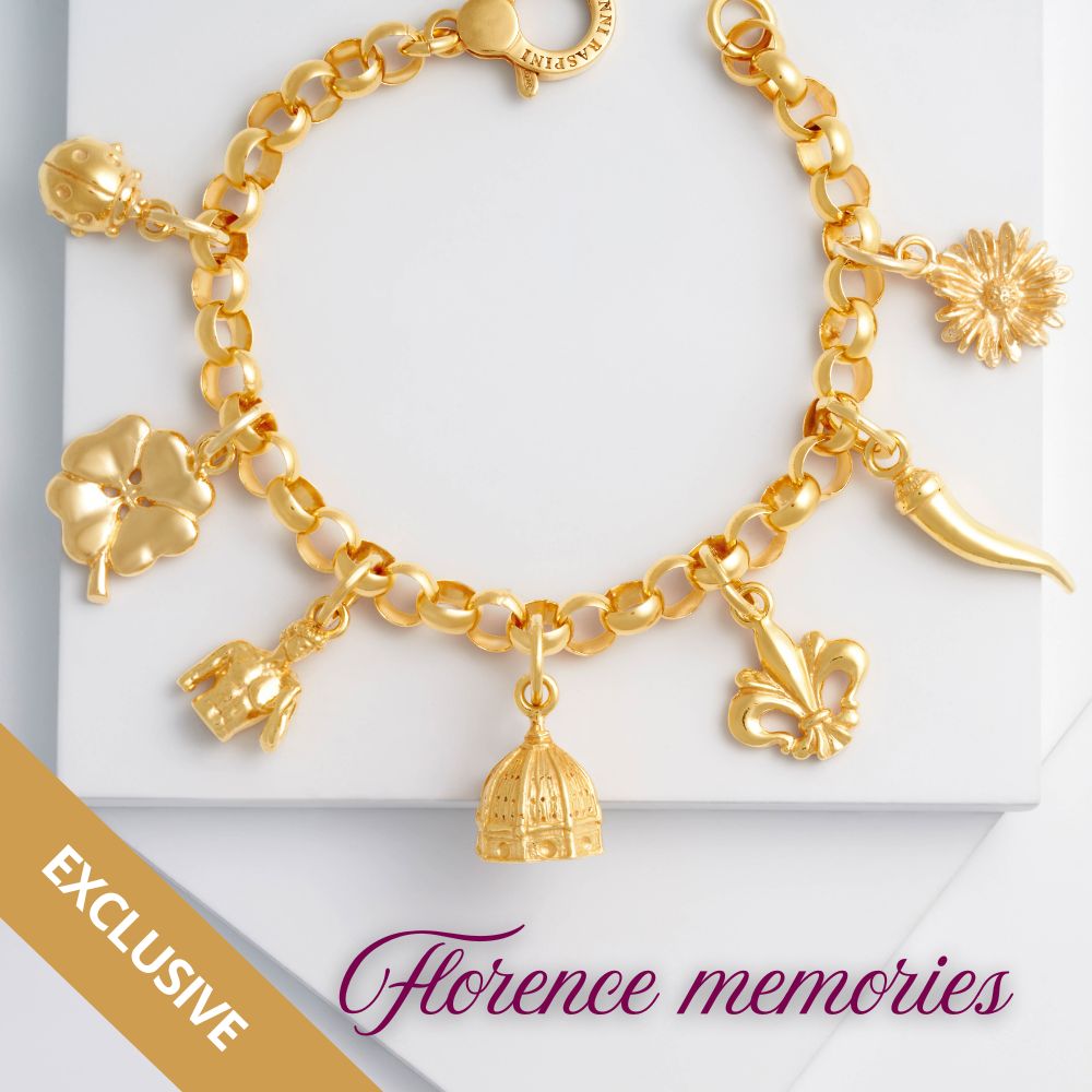 Discover the gold-plated Dome of Florence charm, designed exclusively by Giovanni Raspini and handmade only for Armando Poggi. This handcrafted, Made in Italy, platinum-plated jewel celebrates the iconic Florentine dome with an elegant and unique design. An exclusive and refined piece, designed for those who wish to wear the history and art of Florence with authentic craftsmanship and style.