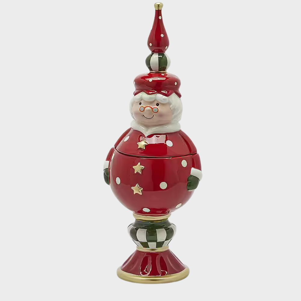 Contenitore Mamma Natale EDG Enzo De Gasperi è una decorazione natalizia elegante e funzionale, perfetta per aggiungere un tocco di allegria e originalità alle tue feste. Realizzato in ceramica smaltata con finitura lucida, è decorato con righe rosse e bianche e stelle dorate, per un effetto raffinato e festoso.