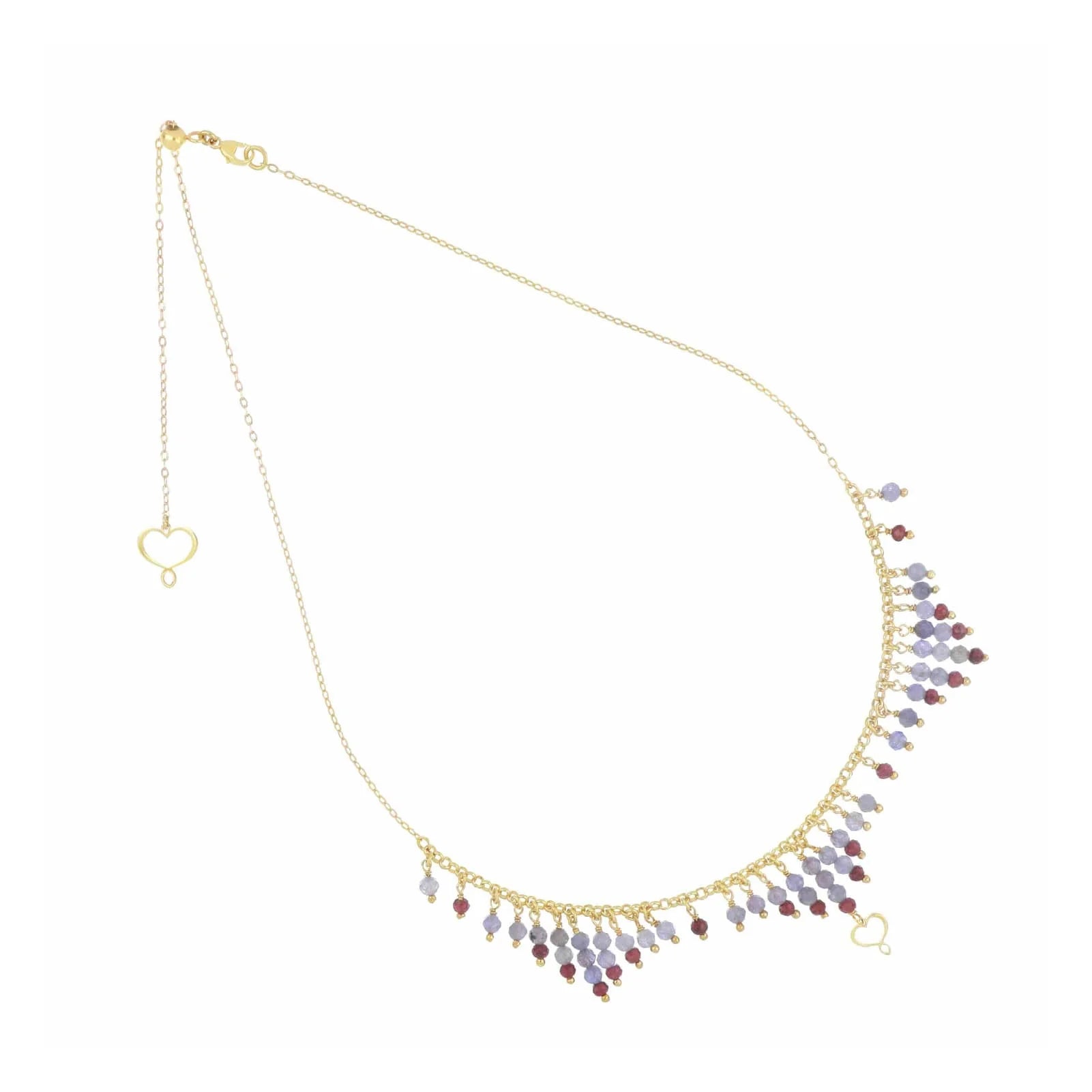 COLLANA IN FRANGE M&S IN ARGENTO DORATO CON TANZANITE E GRANATO