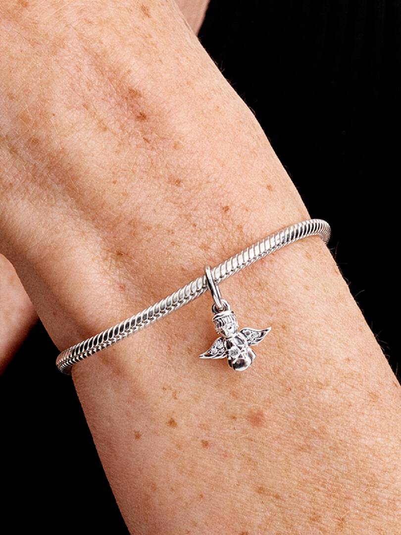 925 Sterling Silver Angel and Star Pendant Charm; 2 micro and 4 round brilliant cut colorless cubic zirconia in bead setting; 1 colorless cubic zirconia in wire setting