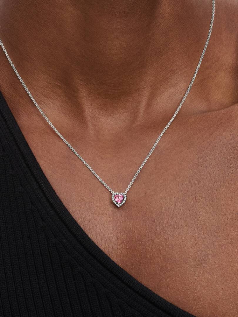 Pink Embossed Heart Necklace, Pandora jewel from the new 2025 collection. Match it with your favorite charms or bracelets