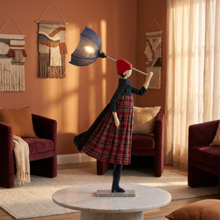 Each lamp is handmade by Xenia, an emerging Greek artist, and is distinguished by a name and a distinctive dress.