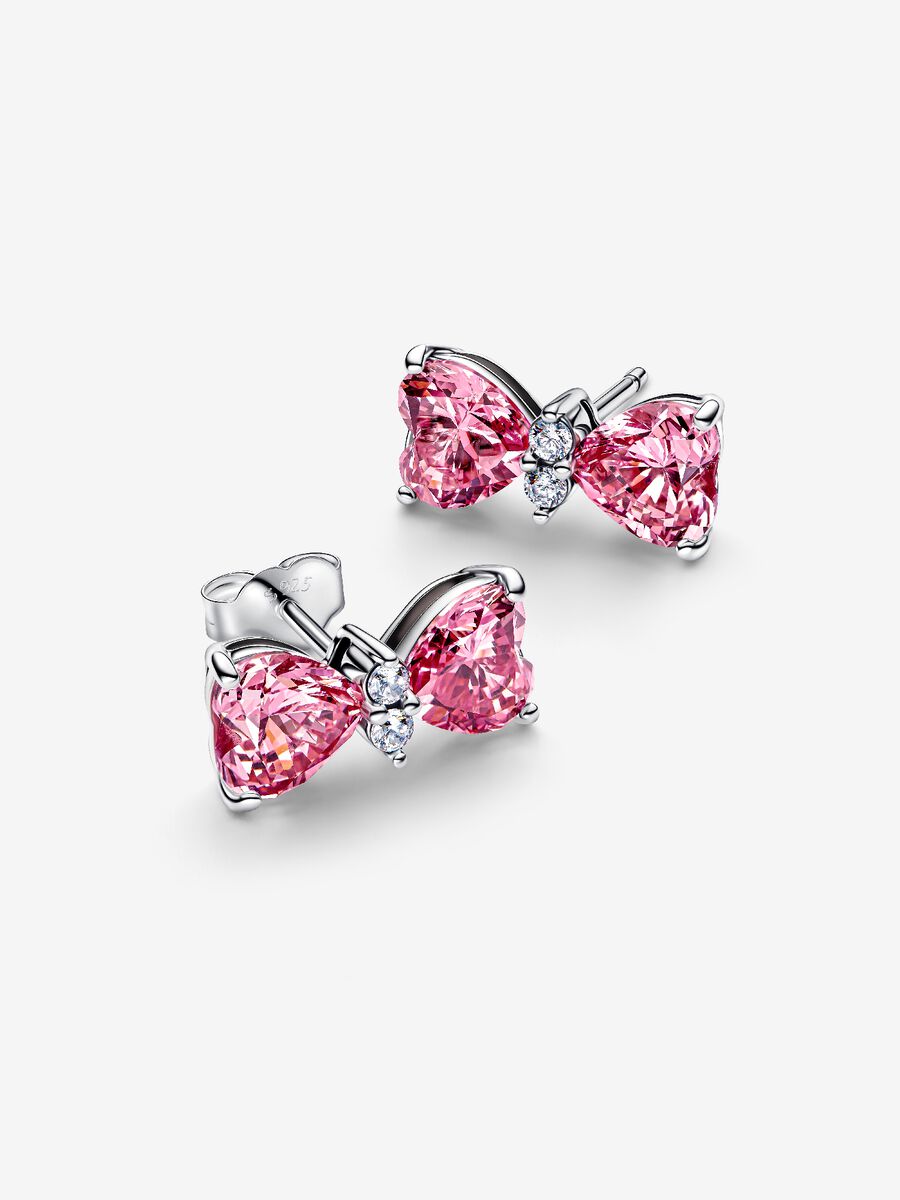 Orecchini a lobo Fiocco in Argento Sterling 925 stud earrings con zirconia cubica incolore e zirconia cubica colore rosa della nuova collezione Pandora.
