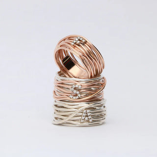 Filodellavita Classic Collection Ring, 5 Strands in 9Kt Rose Gold, 925 Silver and 12 White Diamonds 0.17 Ct